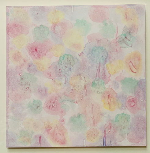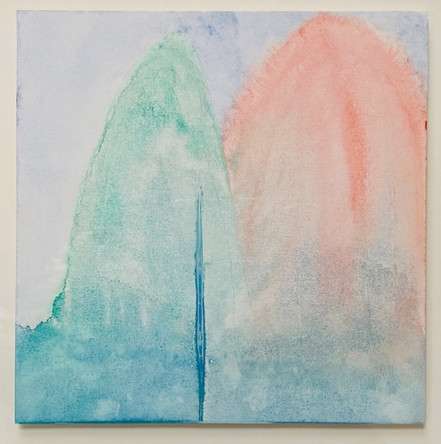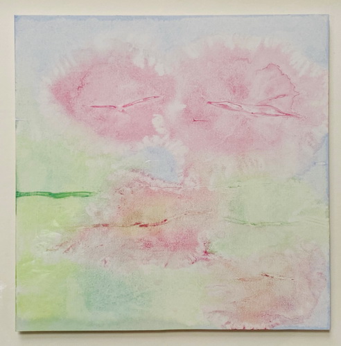 这批作品是在艺术家跌倒受伤、身体受限的情况下创作出来的。坐在轮椅上无法站立、完全依靠看护的照料,使她格外体会到生命的脆弱性。这种心有余而力不足的感受,反而激发了她的不受限制的绘画。朦胧的创作手法,意味着形与色均不受束缚,画面也摆脱了规则和边界,正如意识是无边的。在具体的对象被给予意识之前,意识处于自由的混沌状态,被记忆、想象和身体感觉所萦绕,艾东的绘画就是这三者的混合。她的色彩与当时的身体状态相关,尽管这些色彩总体是明亮悦目的,但观者可以从中感受到痛楚、放松、忍耐等种种心理层次,而这些情绪经由朦胧的创作手法,转化成一种含蓄、多义的艺术表达。
