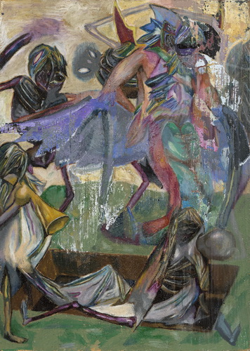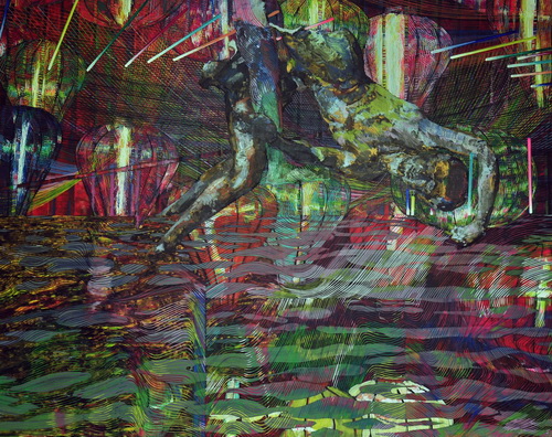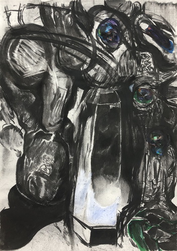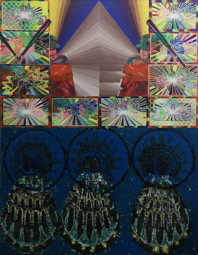 吴彦臻现为中央美术学院博士生。他的作品凸显互联网时代下讯息的爆炸,及其衍伸的各种场景和展现当代社会的对比或相通性。而艺术家对社会关注议题的思考、对壁画的兴趣、对考古的研究、形成了作品目前的呈现及创作手法。吴彦臻的作品透过多层的画面,将现代快速发展的讯息沉淀埋藏于”地层”中,然后又像考古挖掘的过程,层层的往下探勘至破坏保护层,从而展现出作品最终面貌。