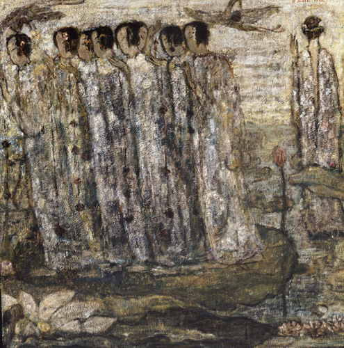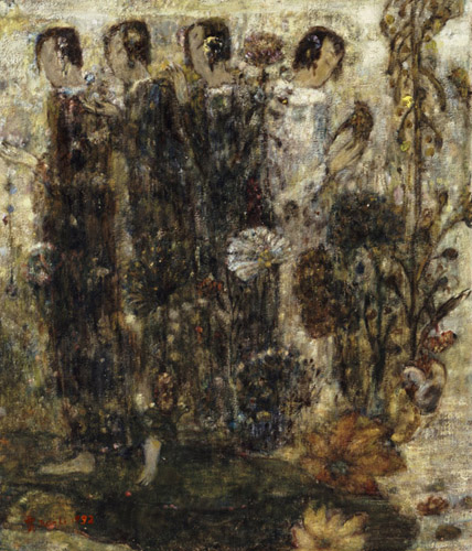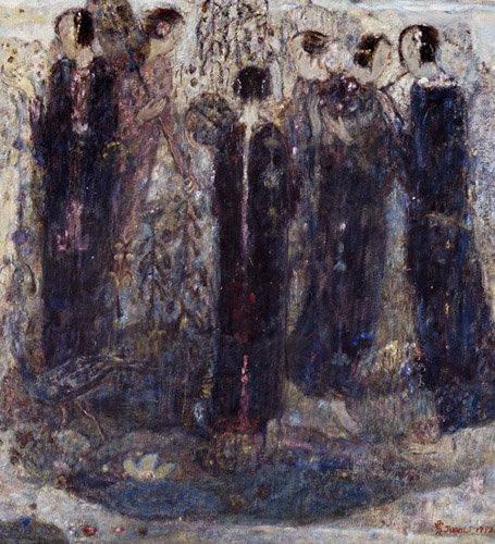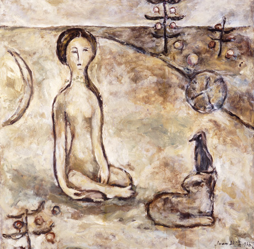 贾鹃丽的作品光线轻柔平缓,虽有强烈的阴影,却鲜有明确的对比;色调淡雅朦胧,笔触斑驳而迷离,营造出了恍如穿越时空、朦胧梦幻的意境,却又夹杂了些许忧郁与不安。清秋如约而至,这个九月让我们在那些极其考究的用色、意境、布景中去感受艺术家笔下,跨越梦境与现实的藩篱之后,古今身份交织的静谧场景。
