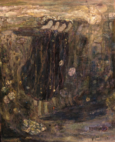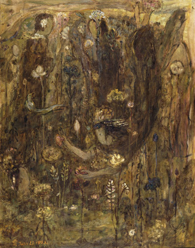 “在我编织的梦里,我如此自在!那些纤尘不染的赤脚踏花仙女,在月光、荷花、云彩之上的漂浮,在晨风暮霭中的漫步,那些无言的仕女,总是静默地倾听我的诉说……”这是贾鹃丽在她自述文章中的描述。梦,虚幻又真实,它会真实地像现实一样呈现,而现实也会虚幻地像梦境一样展示。画里是梦,是寄托了幻想的产物,是生活中转瞬即逝的碎影;梦外是现实,是清晰可触碰的,是肉生土长的人和真实存在。画里梦外,既是旧时的想象与寄托,又是当下的感触与归所。